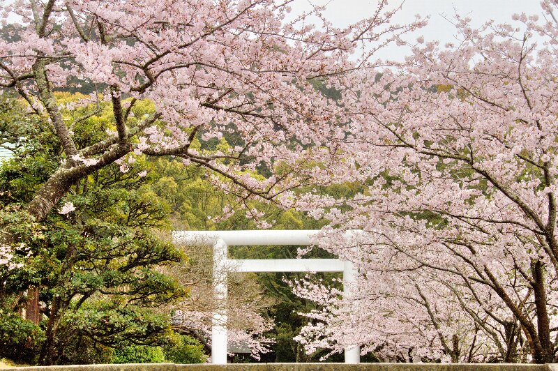 安房神社は「安房のパワースポット」として知られ、境内の各所に桜が咲き誇ります。毎年4月上旬の日曜日には、桜の開花を祝い「桜花祭」が開催され、参道の桜が見頃を迎えます。