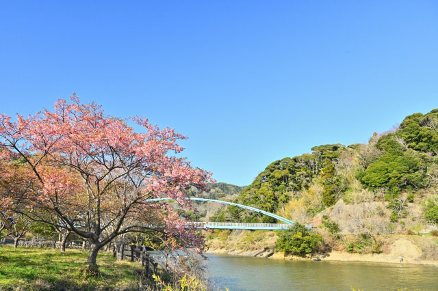海に突き出た岬に広がる自然豊かな公園で、春には桜が園内を彩ります。展望台からは太平洋を一望でき、桜と海の絶景が楽しめるのが魅力。ハイキングやピクニックにもぴったりの、のんびり過ごせる花見スポットです。