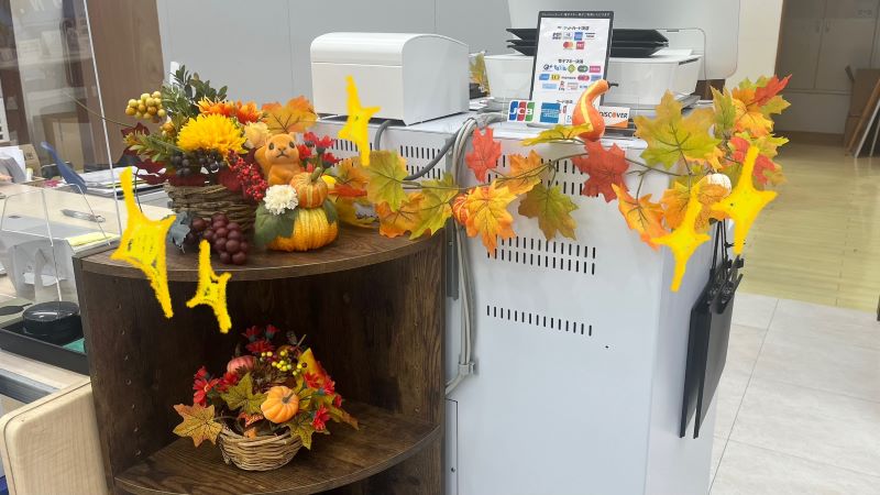9月なのに外はまだ暑いですが、装飾を秋使用に変えました!!
