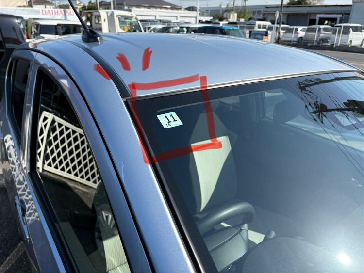 ( ↑ フロントガラスの右上にステッカーが貼ってあります )