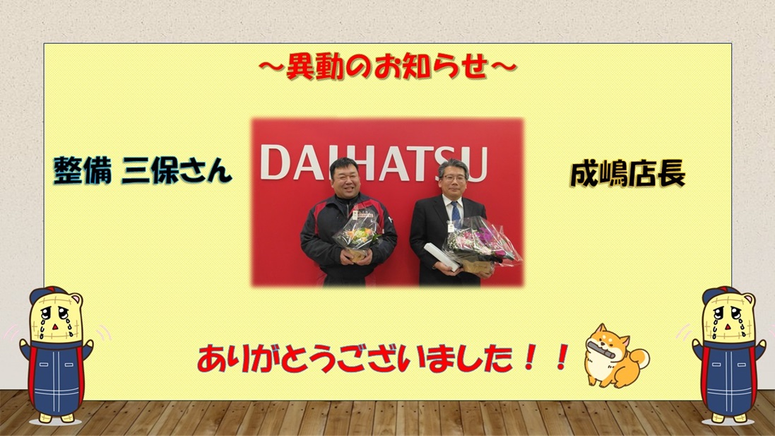 整備の三保さんと成嶋店長が異動になりました!
