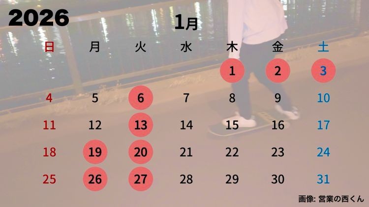 12月27日(土)~1月3日まで、年末年始休暇になります。