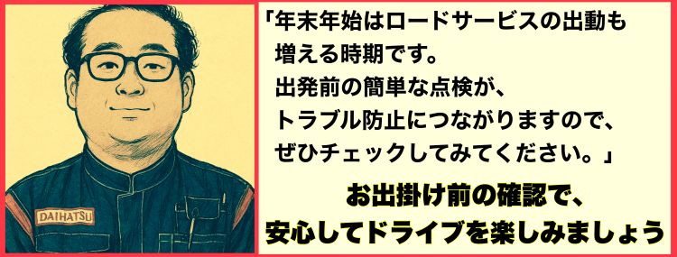 突然エンジンがかからない...なんてトラブルは、年末年始に起きると特にツラいですよね。