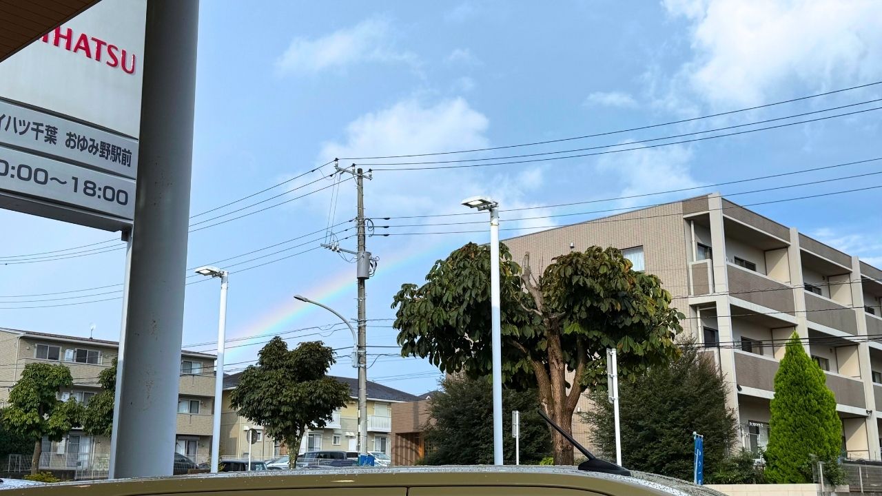 お車を点検中のお客様に『でてます!!!』とお声がけいただき、外に出てみたら虹が・・・!