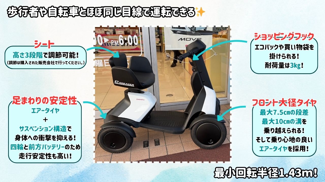 二輪車と操作方法が似ていて、誰でも運転しやすい設計になっています✨