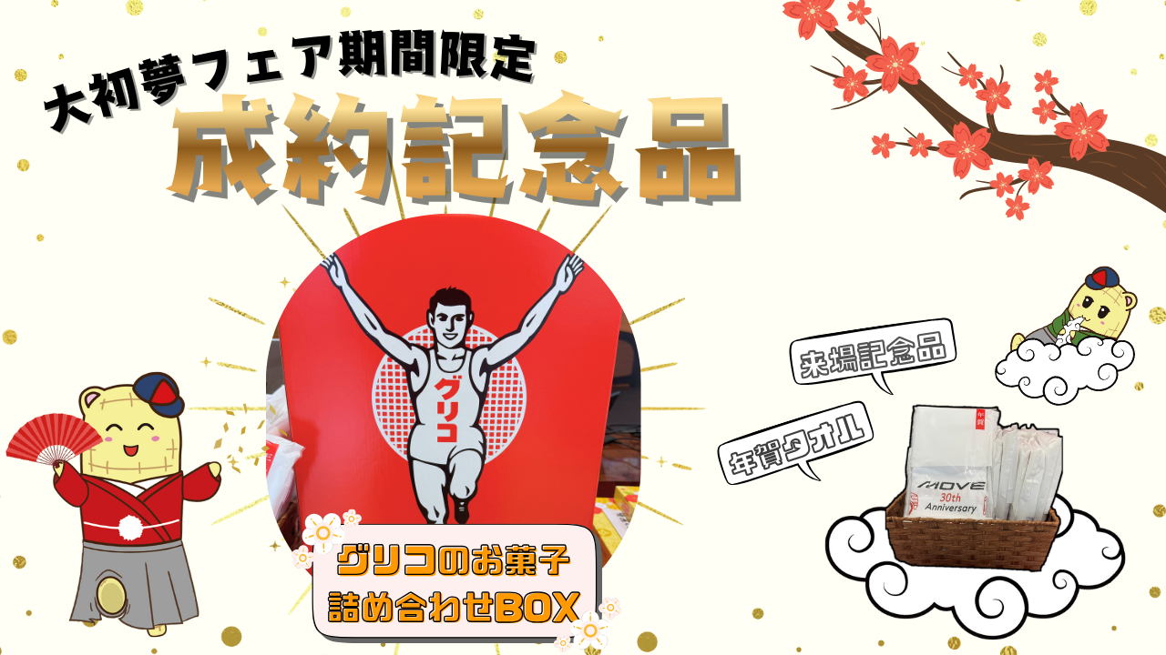 ※グリコのお菓子詰め合わせBOXにつきましては、1組おひとつ・ご成約1台でおひとつとなります。