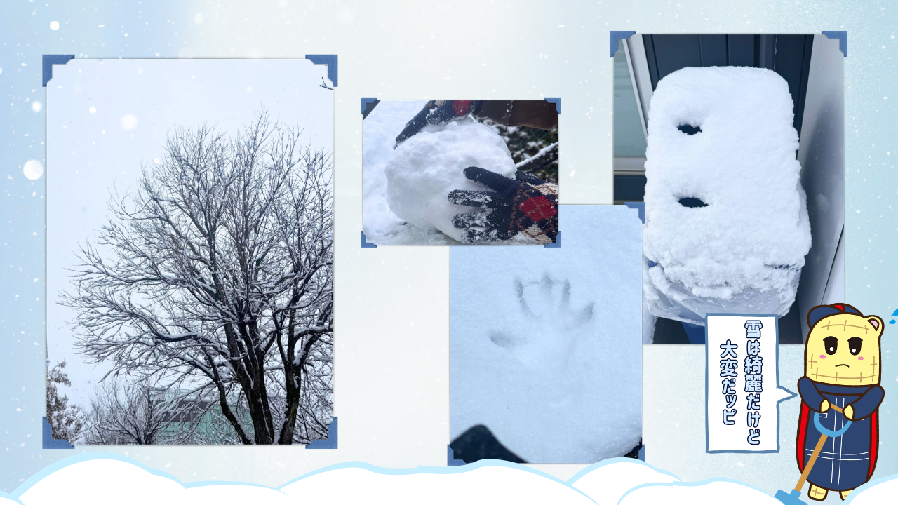 こんなに雪が積もることは全然ないので、写真を撮る手が止まりませんでした⛄