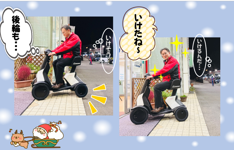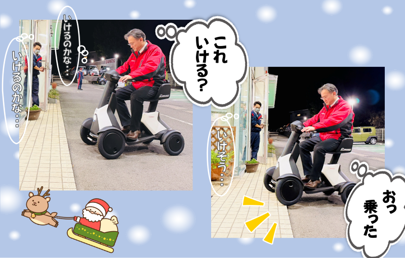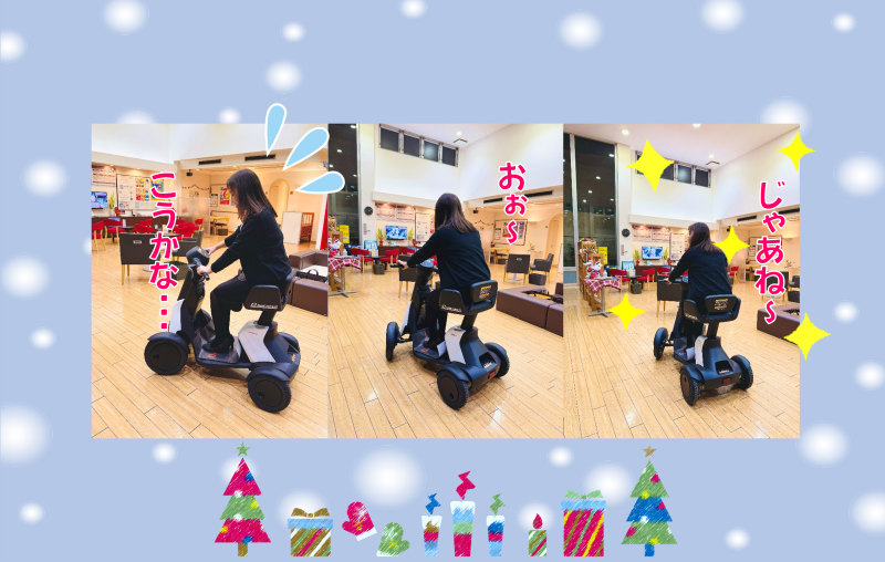 すぐに乗りこなし閉店後のショールーム内を颯爽と走り回っていました。