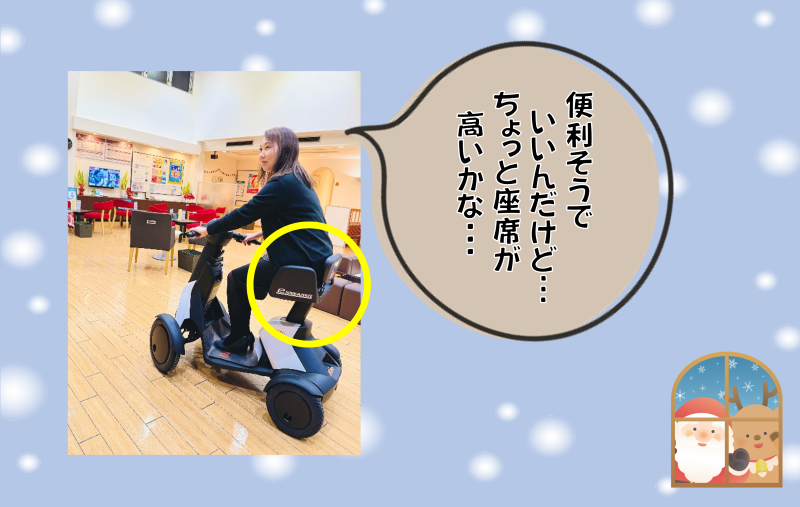 高さのある靴を履いているとはいえ、ちょっと座席がしっくり来ていない様子です。