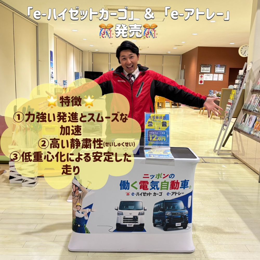 また、新発売した「e-ハイゼットカーゴ」&「e-アトレー」もよろしくお願いします!