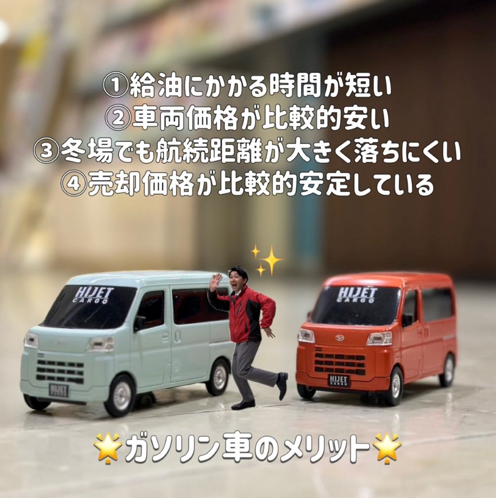 ガソリン車と電気自動車それぞれのメリットをご紹介します😊