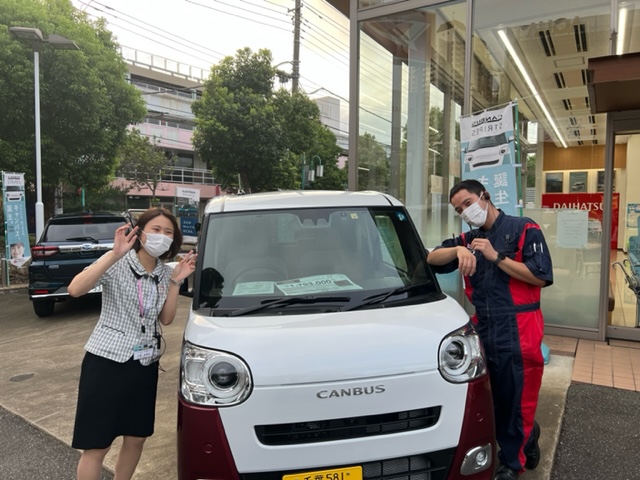 キャンバスのマスクをしてでキャンバスの魅力をアピールしています!