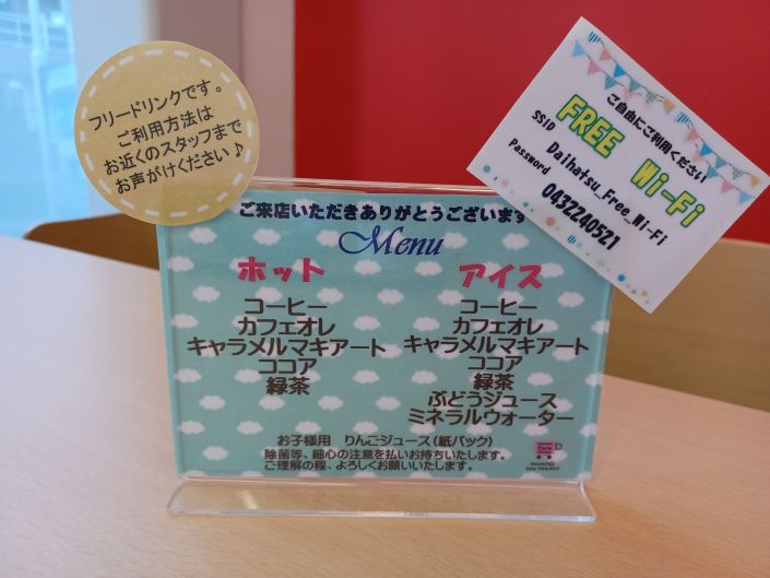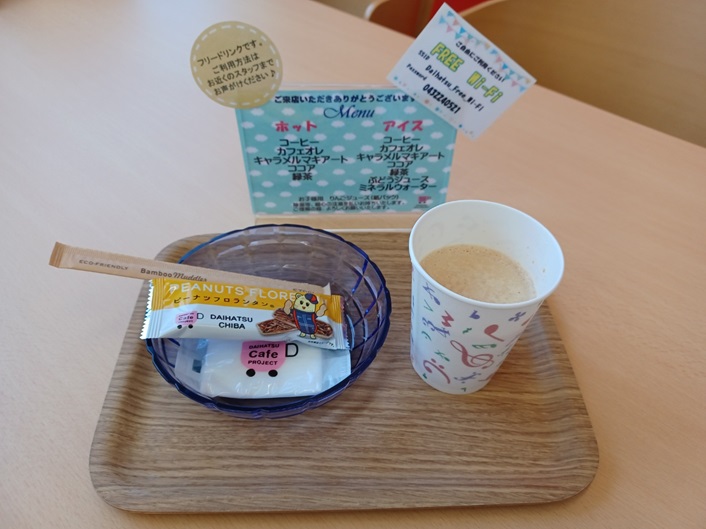 点検や車検・商談でご来店頂いたお客様にちょっとしたスイーツとドリンクをご提供させて頂いております。